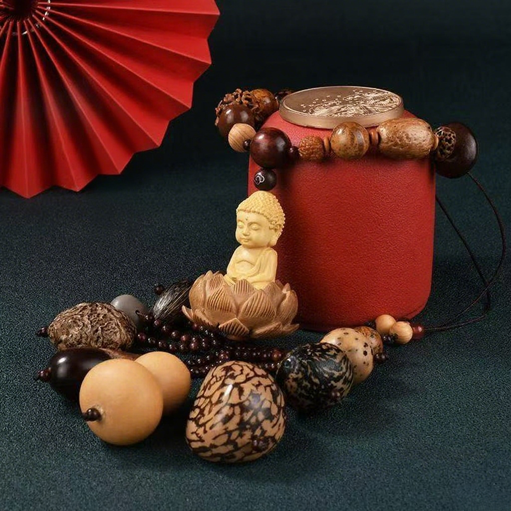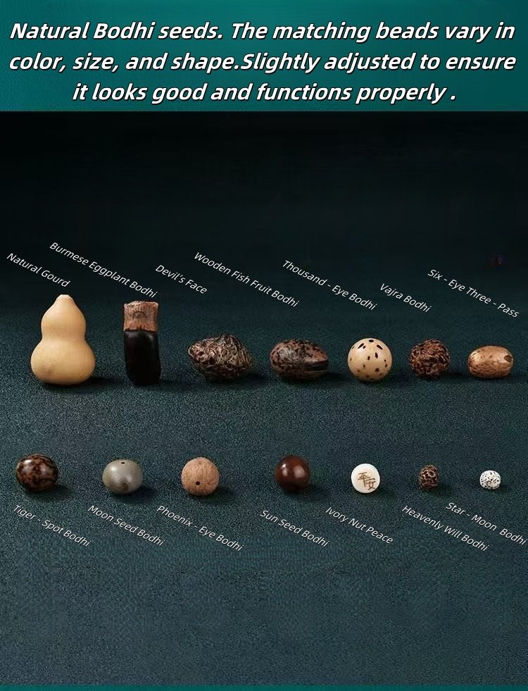 Bodhi seeds have deep roots in Buddhism. “Bodhi” comes from the Sanskrit word meaning “enlightenment and wisdom”—since the Buddha attained enlightenment under a bodhi tree, it has symbolized wisdom. Originally the fruit of plants near snow-capped mountains, bodhi seeds were often made into prayer beads; today, they broadly refer to nut seeds used in ornaments, with rich varieties.