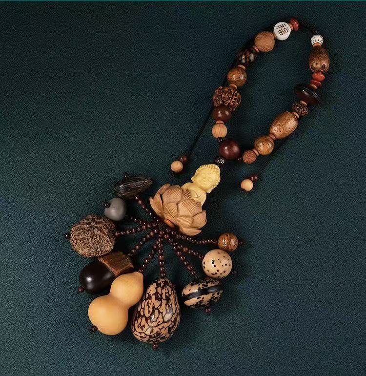 Bodhi travel charms hold special meaning: Bodhi seeds calm the mind, helping travelers stay peaceful. Paired with peach-wood lotus decorations—peach wood is traditionally believed to ward off evil, while lotus symbolizes purity and tranquility—these charms can be hung in cars, on bags, etc. Whether driving, walking, or commuting, they’re thought to gather protective energy, ensuring safe travels and keeping disturbances at bay.